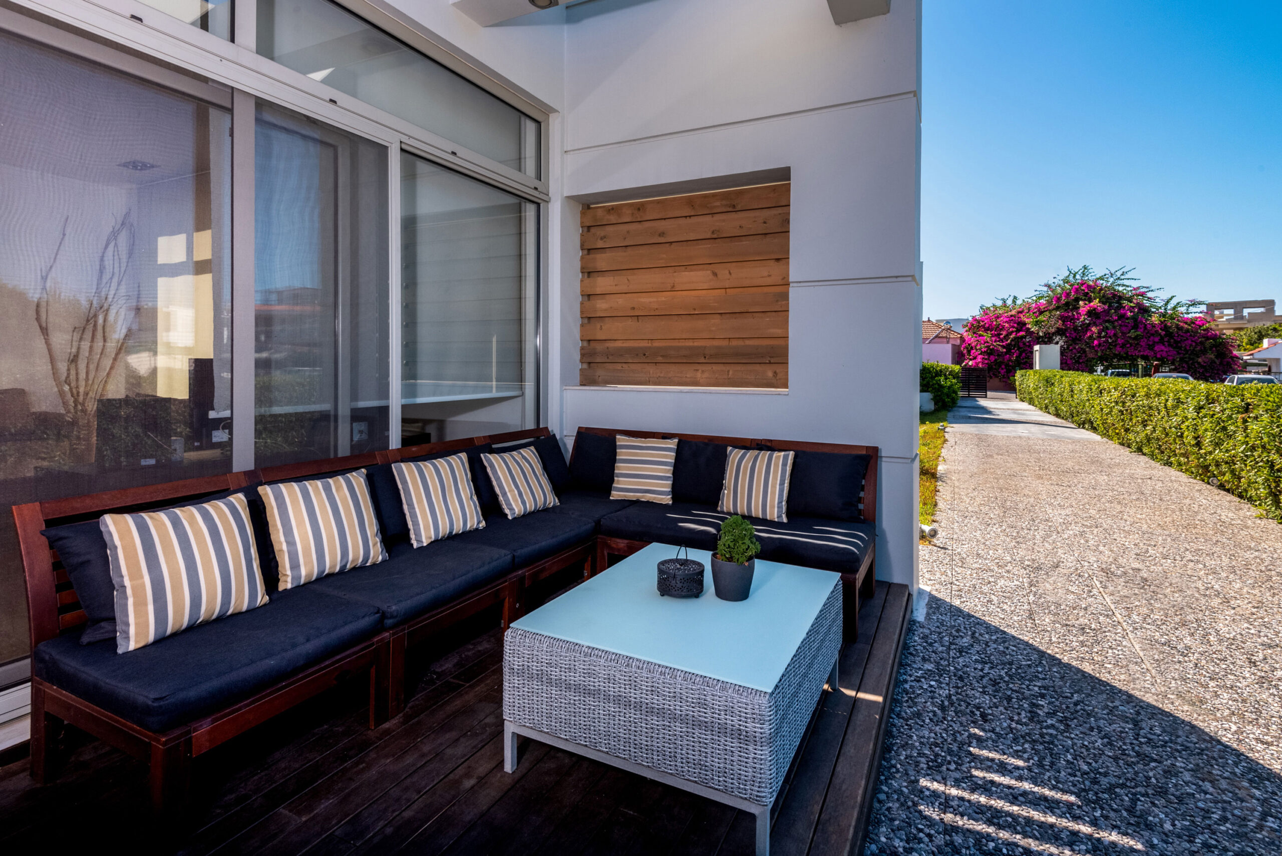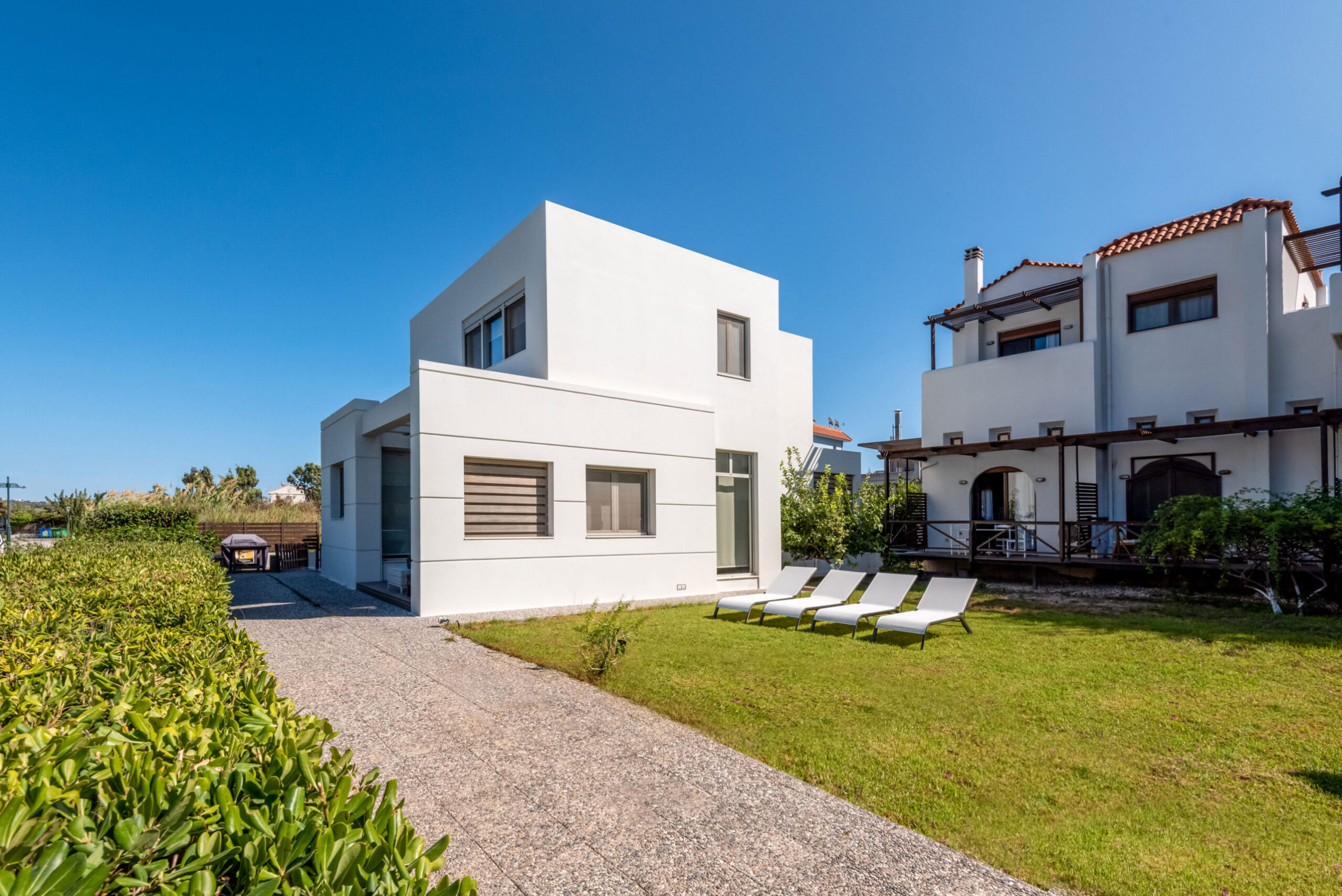 The villa is 170 sq.m in two floors, designed in a modern and minimal style and is located in a 2000 sq.m. shared garden. It offers 3 bedrooms, 2,5 bathrooms and has a maximum capacity of 6 adults. A lot of care and effort has been made in order to build and furnish the house so that we can offer you a comfortable stay in a stylish environment.