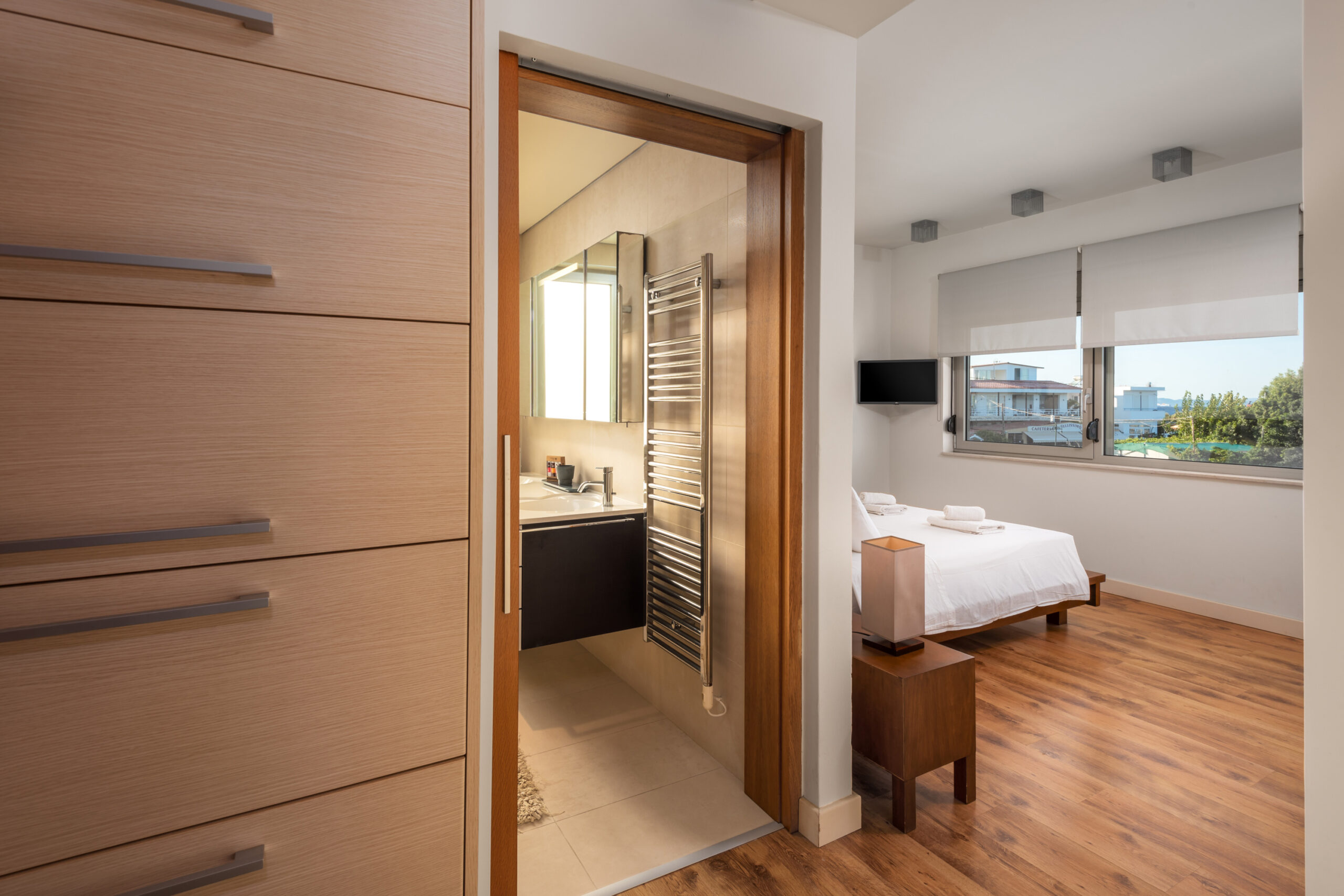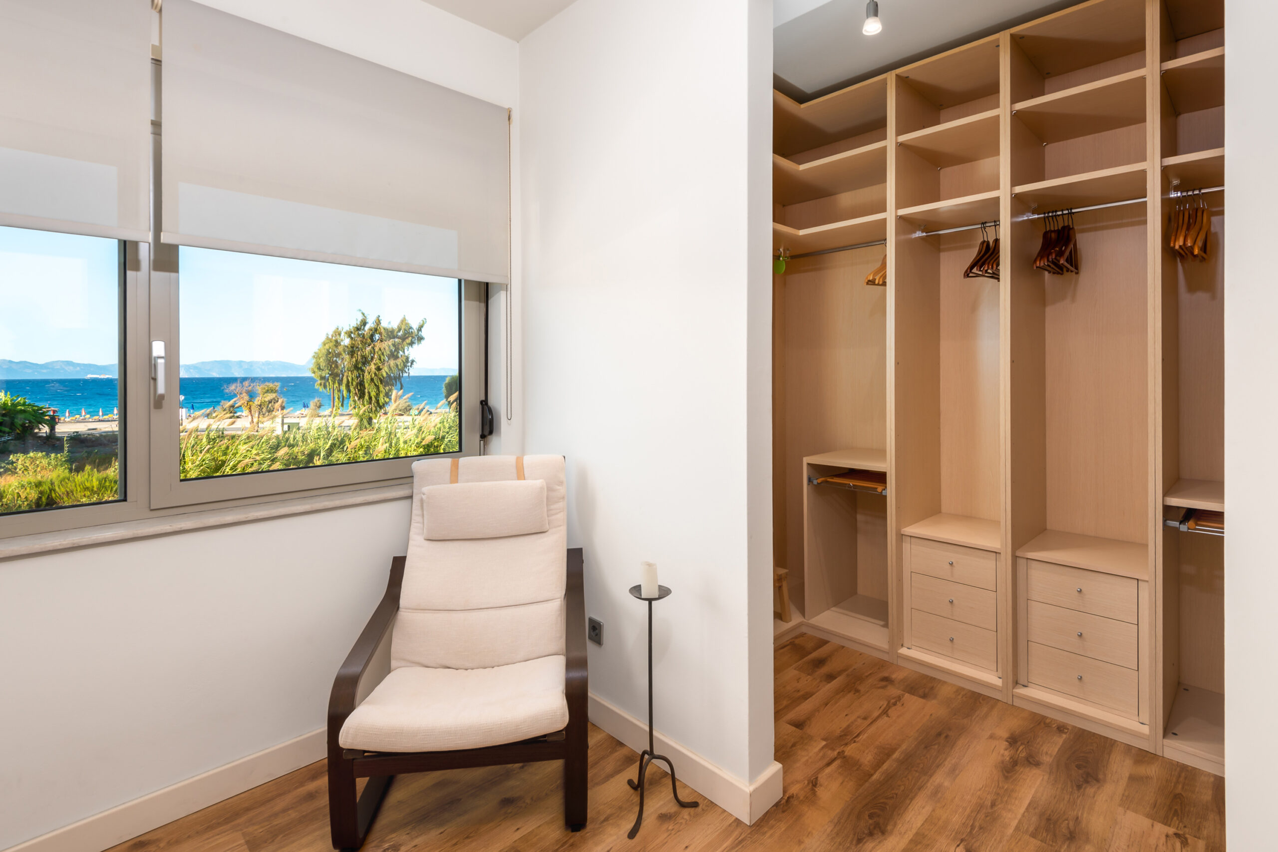 Read More about the rooms and layoutAll 3 bedrooms are located on the first floor with the master bedroom offering a queen size bed, a great view to the sea, a smart TV, a walk-in wardrobe and an en-suite bathroom with an enclosed shower cabin.